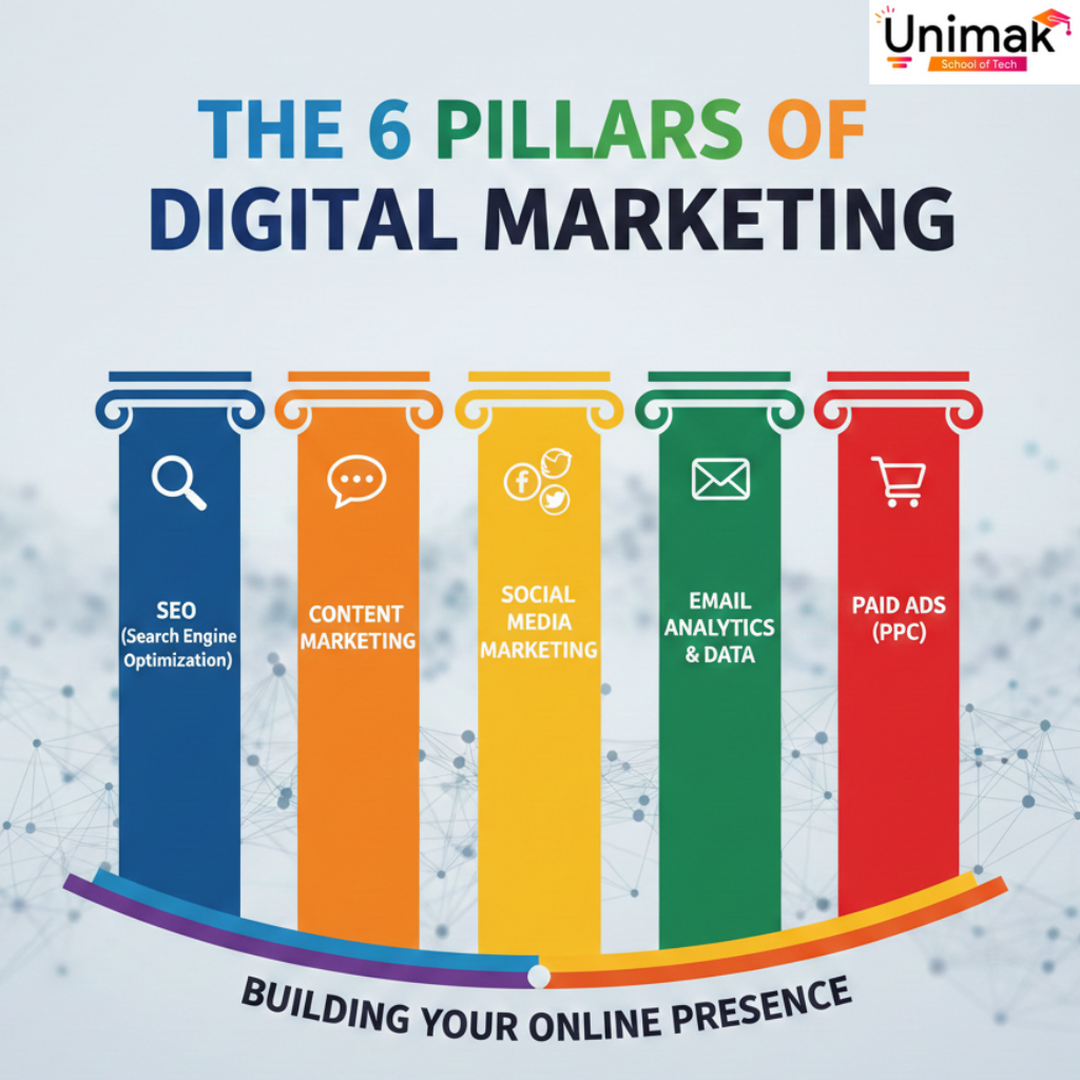 Behind every successful online brand lies a strong digital foundation built on six key pillars: SEO, content marketing, social media marketing, email marketing, analytics, and paid advertising. These pillars work together to create visibility, engagement, and measurable growth. A best digital marketing training institute ensures learners understand not just individual tools, but how each pillar connects to form a complete digital strategy. From improving search rankings and creating valuable content to running data-driven campaigns, mastering these six pillars helps learners build real-world skills and long-term career confidence in digital marketing.